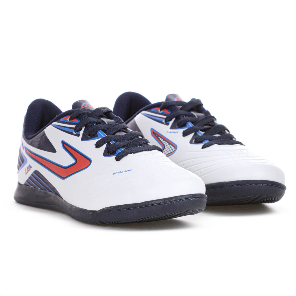 Chuteira Topper Futsal Liga Branco Azul Marinho e Coral - Masculino