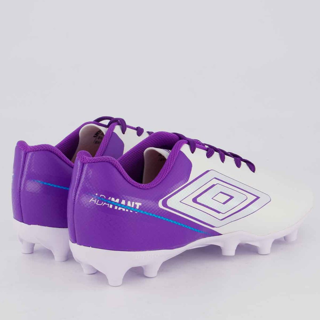Chuteira Umbro Adamant Top Speed Campo Juvenil Branca e Roxa
