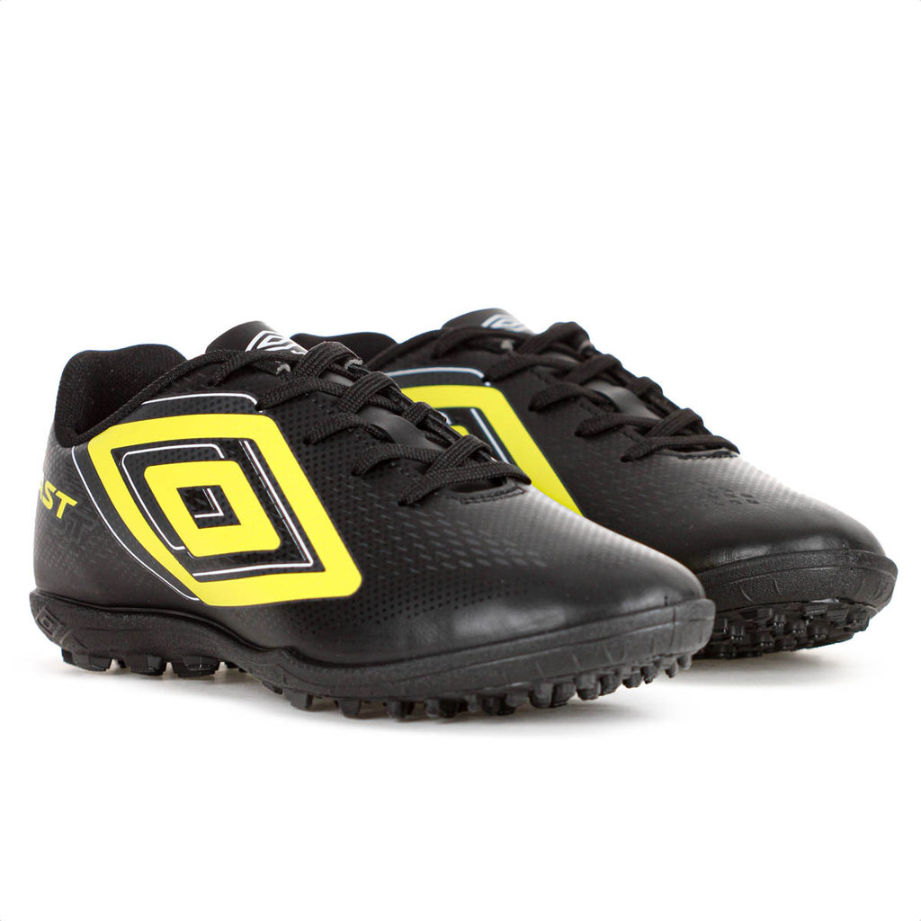 Chuteira Umbro Society Fast II Preto Branco e Amarelo - Masculino