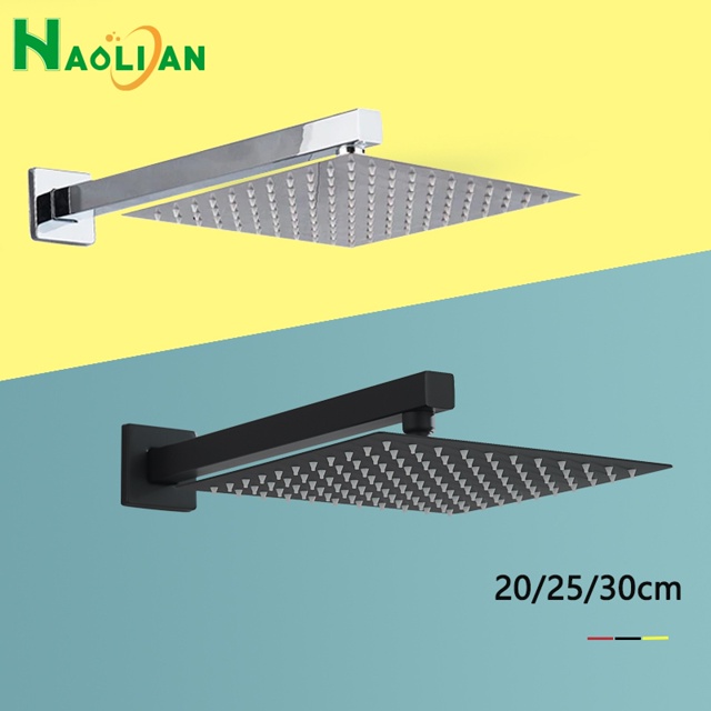 Chuveiro De Aço Inoxidável 304 Quadro 20/25/30 Cm Preto E Prata