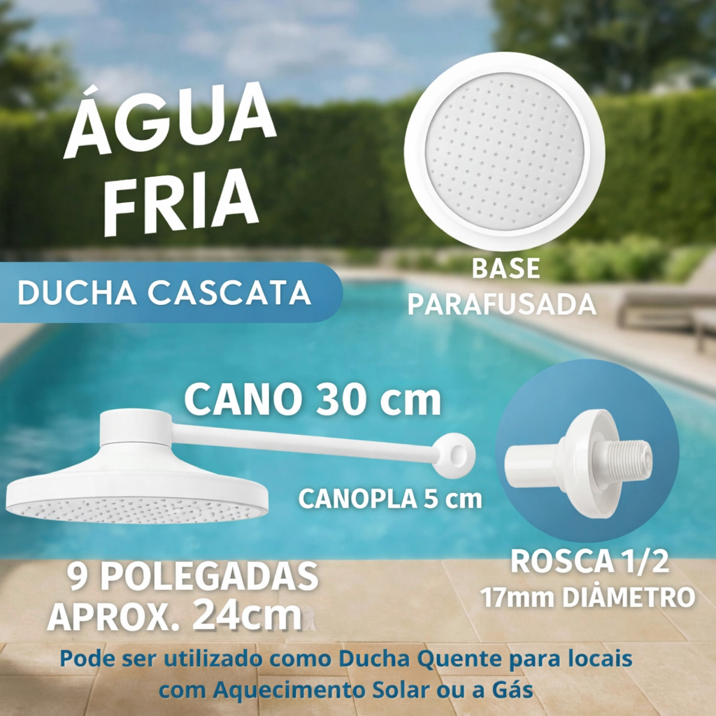 Chuveiro Ducha Fria Grande ABS Piscina Quintal Rosca ½” 24cm Branco 9 Polegadas LUCONI