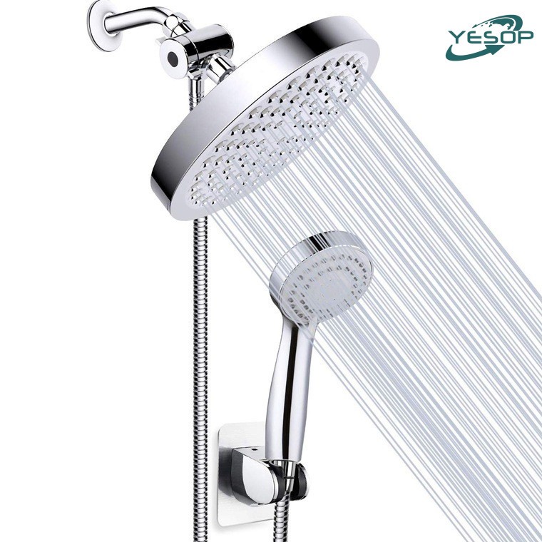 Chuveiro E Ducha Manual De Parede Com Desviador Kit Completo Cor Prata Brilhante Yesop