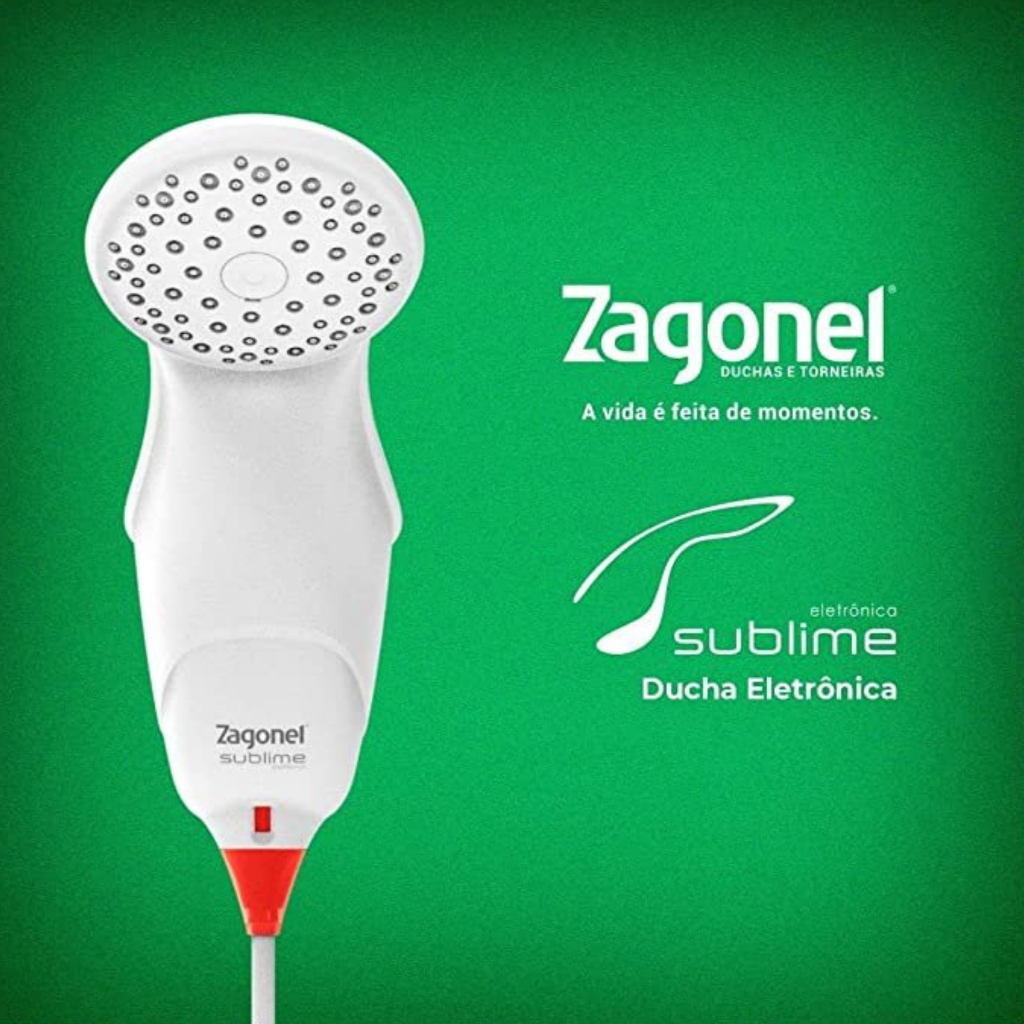 Chuveiro Eletrônico Zagonel Sublime Branco 7500W 220V Com LED Controle de Temperatura Moderno