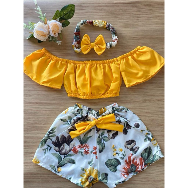 Conjunto Infantil Croped +short + tiara (PROMOÇÃO) SÓ HOJE! Diversos conjuntos, estampas e modelos para voce escolher o seu favorito. Conjuntinhos lindos e confortáveis, que combinam com todas as ocasiões e perfeito para as crianças brincarem. Tecido confortável, macio e não esquenta! TAMANHOS: P(0 a 1) M (1 a 2) G(2 a 3) MAIOR (4 a 6) OBS: Garanta o seu, o estoque acaba rápido!