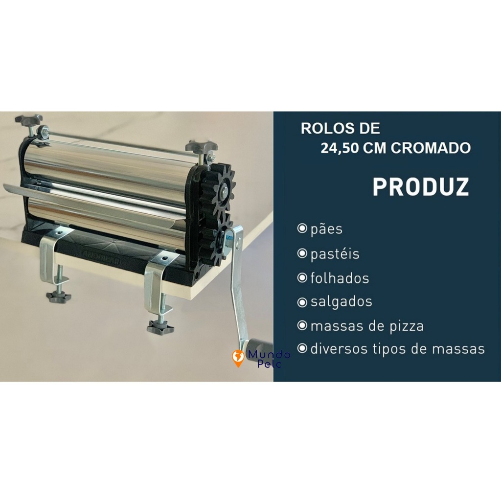 Cilindro de massas 25 cm cromado pizza pão pastel lasanha laminador manual junior