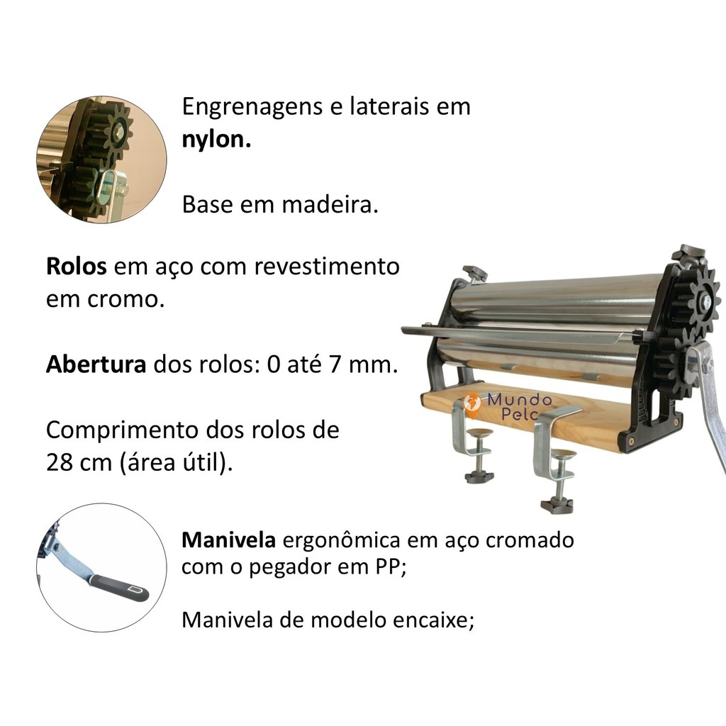 Cilindro de massas 28cm cromado pão pastel pizza laminador sova master