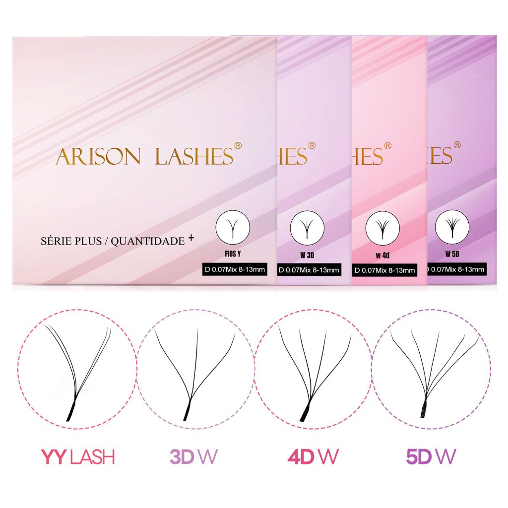 Cílios Arison Lashes Duplo W 4D 0.07d mix 8-13mm Volume Egipcio