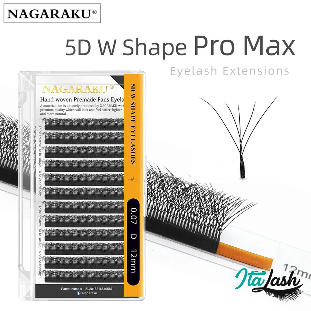 Os Cílios em 5D W, se tornou um fenômeno no meio das Lashes Designers pelo resultado final com bem mais volume, semelhante ao "volume híbrido" ou até mesmo "volume russo", porém construído com a técnica clássica fio a fio, sem a necessidade de montar os tão temidos fans já que o fio vem prontinho em 5D (ou 5 fios). Este fio Nagaraku 5D W possui ainda mais volume que os fios Y (2D) e W (3D), já que uniu-se a leveza do fio individual com 5x mais volume, desenvolvendo um produto novo e extremamente eficiente, principalmente para as Lashes que não tem facilidade para montar fans. Os fios 5D W Nagaraku são fabricados com material de alta qualidade e possuem um entrelaçamento de fios feitos em PBT, muito leve que não prejudica os fios naturais • Os fios 5D W proporcionam um lindo efeito volumoso; • Os fios são montados em 5D (5 fios) na fita, bastando apenas retirar com a pinça e aplicar; • O efeito é um trabalho marcante com expressivo volume de fios. O estojo possui 12 fileiras.