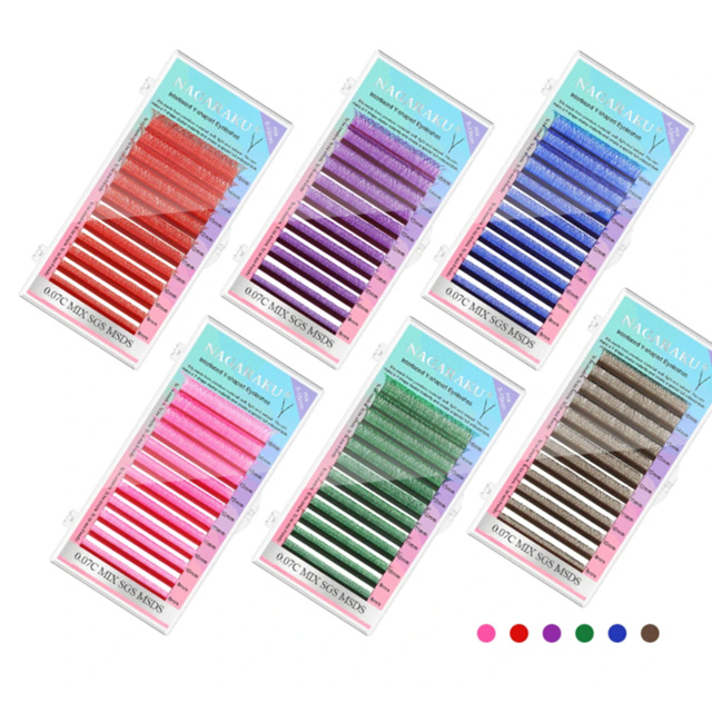 Cilios Nagaraku YY Curvatura D - Volume Brasileiro Colorido Rosa, roxo, azul extensão de cilios ORIGINAL