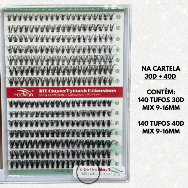 Cílios Fadvan DIY Cluster Eyelash Extensions ESCOLHA COM [10D+20D] OU [30D+40D] NA VARIAÇÃO ESCOLHA A QUANTIDADE DE CARTELAS NA VARIAÇÃO Garanta um olhar poderoso com os Cílios Fadvan ideais para quem busca cílios mais volumosos com praticidade e elegância! ✨ Detalhes do Produto: 📦Em 1 CARTELA 10D+20D contém: Do 10D contém: 20 tufos tamanho 9mm, 20 tufos tamanho 11mm, 20 tufos tamanho 12mm, 20 tufos tamanho 13mm, 20 tufos tamanho 14mm, 20 tufos tamanho 15mm, 20 tufos tamanho 16mm Do 20D contém: 20 tufos tamanho 9mm, 20 tufos tamanho 11mm, 20 tufos tamanho 12mm, 20 tufos tamanho 13mm, 20 tufos tamanho 14mm, 20 tufos tamanho 15mm, 20 tufos tamanho 16mm Totalizando 280 tufos - MIX 9-16mm 📦Em 1 CARTELA 30D+40D contém: Do 30D contém: 20 tufos tamanho 9mm, 20 tufos tamanho 11mm, 20 tufos tamanho 12mm, 20 tufos tamanho 13mm, 20 tufos tamanho 14mm, 20 tufos tamanho 15mm, 20 tufos tamanho 16mm Do 40D contém: 20 tufos tamanho 9mm, 20 tufos tamanho 11mm, 20 tufos tamanho 12mm, 20 tufos tamanho 13mm, 20 tufos tamanho 14mm, 20 tufos tamanho 15mm, 20 tufos tamanho 16mm Totalizando 280 tufos - MIX 9-16mm 🌟 Curvatura: D 💫 Espessura: 0.07mm 📏 Comprimentos: 9mm, 11mm, 12mm, 13mm, 14mm, 15mm, 16mm 🧵 Material: Mink sintético (hipoalergênico) 💖 Esses tufos prontos permitem personalizar o comprimento dos cílios de forma prática e rápida, criando um visual marcante, com acabamento leve e natural. A curvatura D proporciona mais destaque ao olhar, sendo perfeita tanto para uso profissional quanto para quem ama um efeito glamouroso em casa. ✅ Alta qualidade Fadvan ✅ Volume com leveza ✅ Ideal para DIY e extensão profissional ✅ Confortáveis, duráveis e fáceis de aplicar 🚚 Envio imediato para todo o Brasil! Compre até as 13:00 e enviamos a transportadora no mesmo dia.