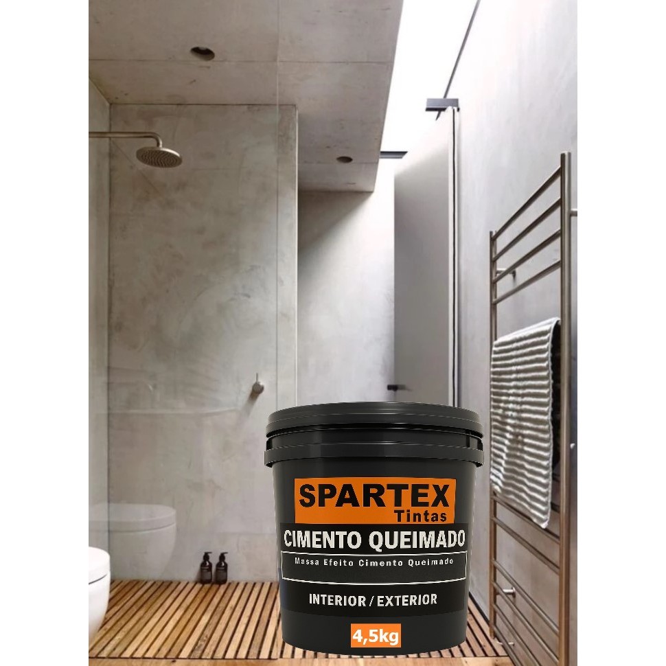 CIMENTO QUEIMADO 4,5KG SPARTEX CINZA ESCURO Indústria Brasileira - 32 anos no mercado, fornecendo tintas e complementos Acrílicos de alta qualidade e Alto Padrão dentro do segmento Econômico e do segmento de Produtos Premium. O cimento queimado Spartex é uma massa que já vem pronta para ser utilizada, de fácil aplicação. Para quem está procurando mudar o visual da casa com facilidade e agilidade O Efeito Cimento Queimado vem cada vez ganhando mais espaço na decoração. Se engana quem pensa que são necessários muitos produtos e técnicas. A aplicação é fácil, não faz muita sujeira e nem fissuras, você mesmo pode aplicar Proporciona para sua parede um efeito lindo, moderno e sofisticado. Suas paredes terão um efeito personalizado, podendo ser aplicado em ambientes internos e externos • Escritórios • Salas • Restaurantes modernos • Salas Co-work • Banheiros A massa que produz o efeito de Cimento Queimado traz um efeito manchado e rústico aos ambientes. Utilizado em superfícies de reboco, massa corrida, massa acrílica, gesso e drywall.