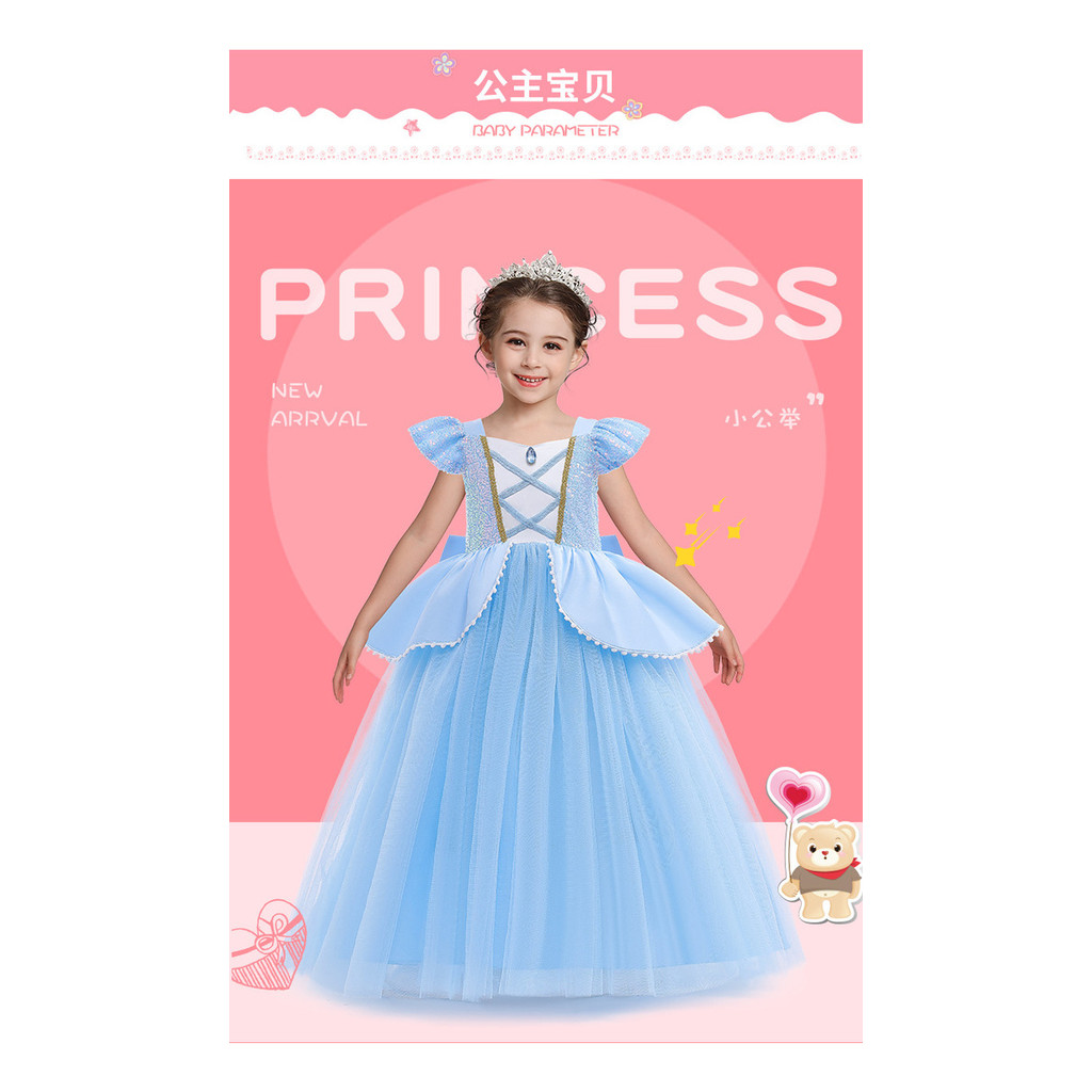 Cinderela Vestido De princesa para meninas Presente De Aniversário 3-10 Anos Roupas Infantis Vestido Festa Azul