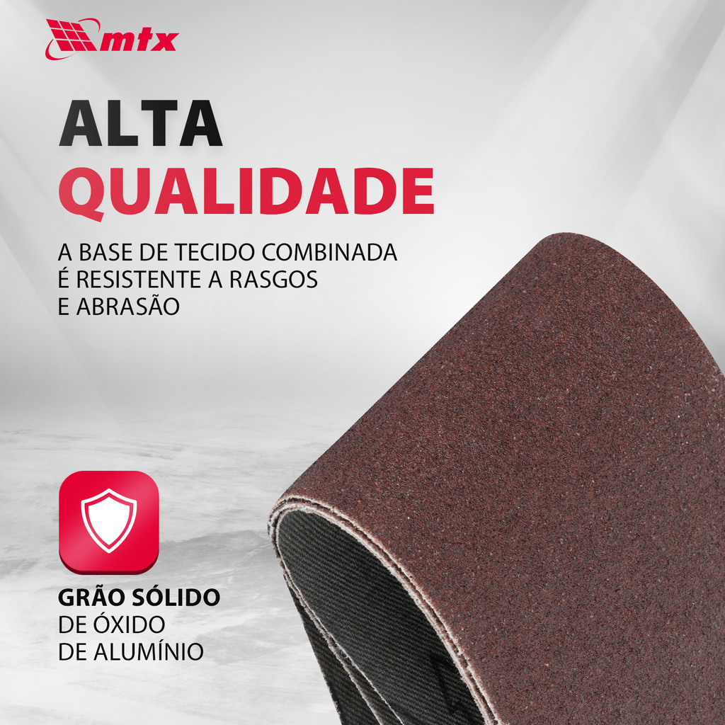 Cinta de Lixa MTX P80 7427755 – Eficiência e Versatilidade para Processamento Intermediário A Cinta de Lixa MTX P80 7427755 é uma ferramenta de alto desempenho, desenvolvida para uso em máquinas de lixar de fita com medidas de 75 x 457 mm. Indicada para operações de lixamento primário e intermediário, esta cinta oferece desempenho superior em superfícies de madeira, metal e plástico, facilitando a remoção eficaz de verniz, tinta, ferrugem e rebarbas. Vantagens Alta Velocidade de Processamento O grão de óxido de alumínio, reconhecido por sua dureza e afiação precisa, possibilita a remoção rápida de grandes volumes de material, otimizando o tempo e a produtividade. Versatilidade de Aplicação Ideal para diversos tipos de materiais, tornando-se uma ferramenta indispensável para profissionais e oficinas que realizam trabalhos variados. Processamento Intermediário O grão P80 é especialmente indicado para suavizar superfícies após lixamentos grossos, preparando-as para acabamentos mais refinados ou tratamentos posteriores. Durabilidade e Resistência A base de tecido combinado garante robustez e longa vida útil, suportando o uso contínuo sem perda de desempenho. Adesão Superior do Abrasivo A cola à base de resina formaldeído assegura que o abrasivo permaneça firmemente aderido, mesmo em madeiras frescas ou úmidas, proporcionando lixamento eficaz e uniforme. Aplicações e Benefícios Preparação e suavização de superfícies de madeira, metal e plástico. Remoção eficiente de verniz, tinta, ferrugem e rebarbas. Excelente escolha para profissionais e entusiastas que buscam alta qualidade e confiabilidade em lixamento. A Cinta de Lixa MTX P80 7427755 é a parceira ideal para garantir superfícies preparadas com qualidade, combinando eficiência, versatilidade e durabilidade para resultados impecáveis em seus projetos.