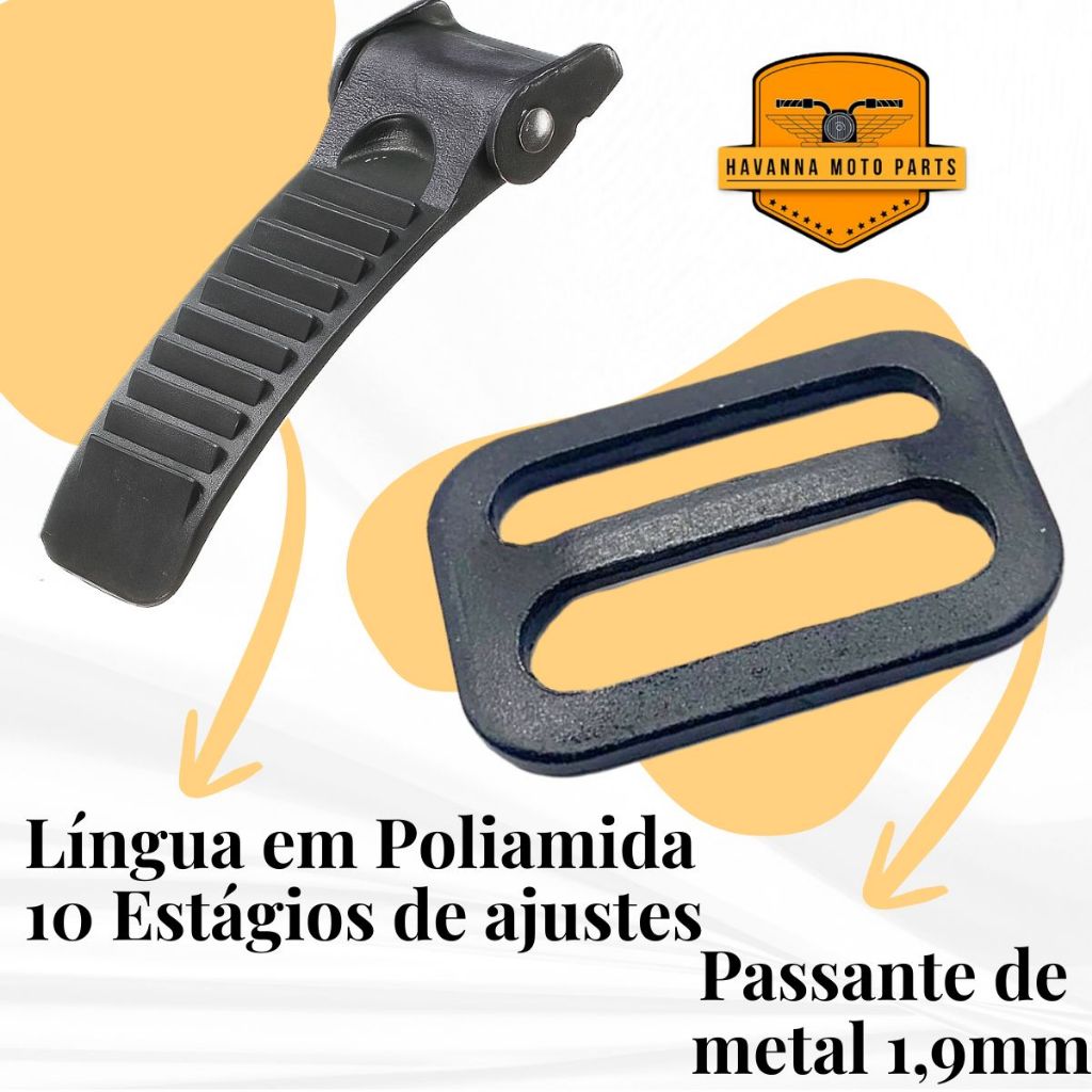 Cinta jugular Completa Com Engate Micrométrico Sistema de engate rápido para capacetes. Pode ser adaptado em qualquer capacete. O sistema mais seguro e prático disponível no mercado. O engate micrométrico Polivisor, além de oferecer a melhor resistência e qualidade do mercado, garante ajustes precisos e suaves para seu capacete. Além do ajuste milimétrico, o usuário poderá destravar a cinta do capacete com apenas uma das mãos. Qualidade, segurança e praticidade em um mesmo produto. Aplicação: Todos os tipos de capacetes (universal) Ideal para: Motociclistas urbanos e estradeiros Conteúdo da Embalagem: 01 Cinta Jugular C/Engate Micrometrico Universal Polivisor 1168 Especificações: - Alta qualidade - Chapa de Metal nas duas pontas - Cinta em Nylon - Contém Argola para prender o capacete na motocicleta - Sistema de Engate Micrométrico - Cor: Preto + Vermelho - Dimensões do Engate : (2.76 x 0.87 x 0.55) "/ (7 x 2.2 x 1.4) cm Características: - Fivela de alça de queixo profissional para qualquer capacete - Speed clip, lançamento rápido - Uma maneira segura, rápida e conveniente de proteger seu capacete. - Instalação fácil para o seu capacete - 9 engrenagens ajustáveis Benefícios: Sistema Micrométrico de Trava: Ajuste com precisão milimétrica, permitindo fixação firme e confortável. Ideal para uso diário, reduz o incômodo das fivelas tradicionais. Instalação Simples: Compatível com a maioria dos modelos de capacetes. Pode ser instalado com ferramentas básicas, sem necessidade de assistência técnica. Compatibilidade Universal: Serve em capacetes abertos, fechados e articulados, desde que possuam cinta jugular padrão. Alta Resistência: Fabricado com materiais duráveis, projetado para suportar uso intenso sem perder a eficiência de travamento. Mais Segurança no Trânsito: Evita solturas acidentais. O mecanismo de engate rápido é confiável e estável mesmo em trajetos longos e com trepidação. Importante!! - Recomendamos que a troca seja feito por um profissional de sua confiança. - Não nós responsabilizamos pelo mau uso do produto