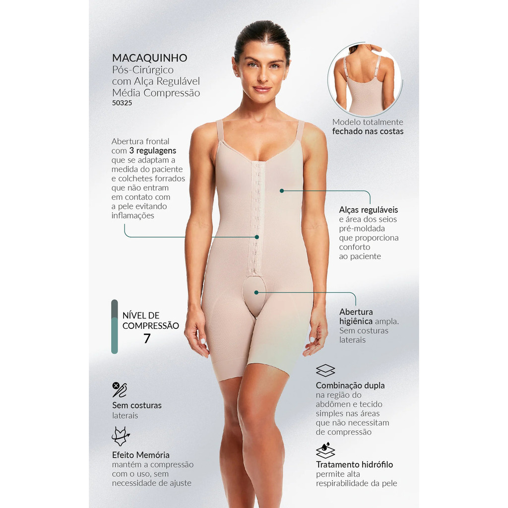 Cinta Macaquinho Modelador Pós Cirúrgico Compressão Confortável Pós Lipo Com Alça Regulável Plié Med