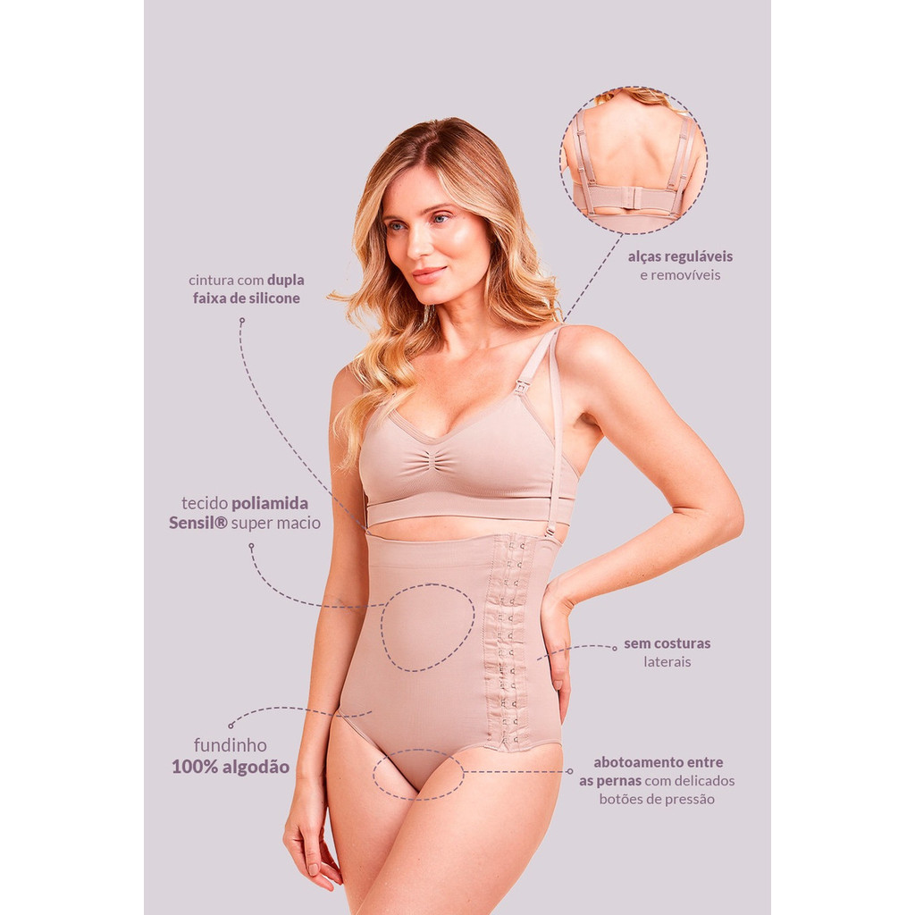 Cinta Modeladora Estética Pós Parto Mamãe Cintura Alta Alta Sustentação Com Abertura em 3 Regulagens