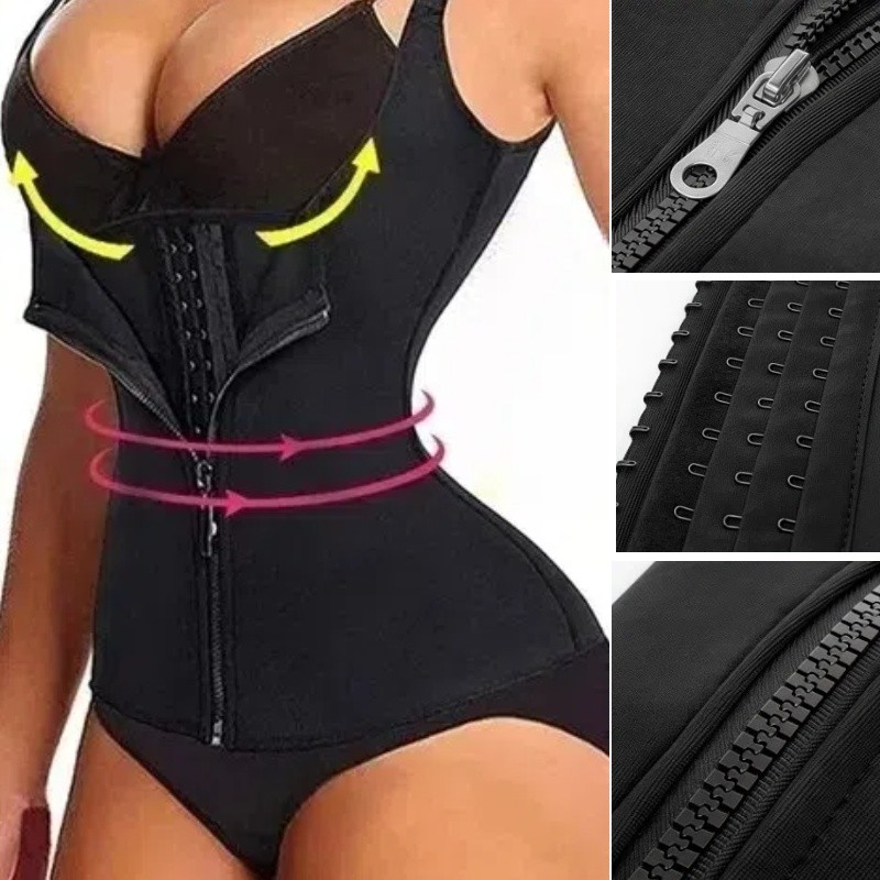Cinta Modeladora Feminina com Zíper - Cintura Dupla de Compressão Ajustável para Redução Abdominal e Suporte com Alça