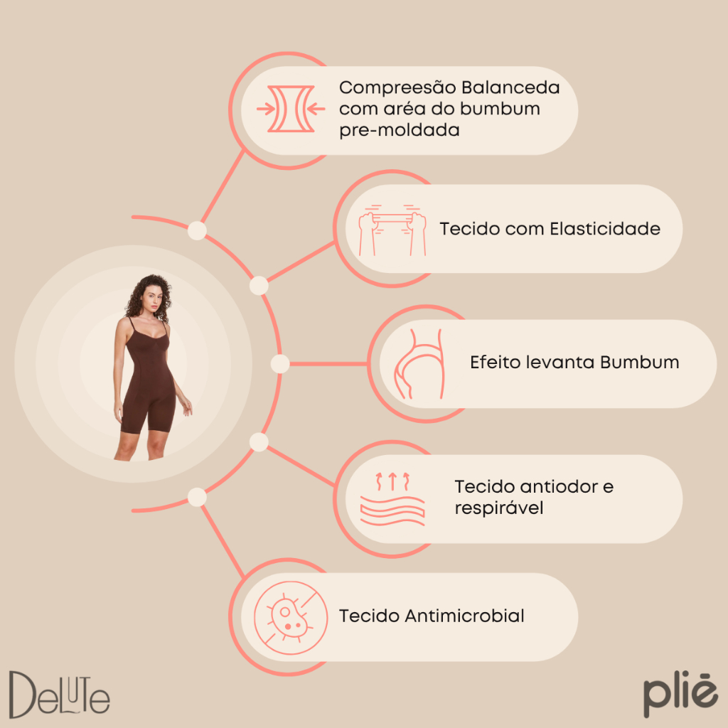 O Modelador Corporal Plié Levanta Bumbum e Diminui Barriga é ideal para quem busca modelar a silhueta com conforto e discrição. Produzido com tecido de alta compressão e tecnologia sem costura, ele oferece suporte eficaz ao abdômen e efeito lifting no bumbum, valorizando as curvas naturais do corpo. Com cintura alta, reforço frontal e acabamento invisível, essa cinta modeladora ajuda a afinar a cintura, reduzir o volume da barriga e suavizar culotes, sem marcar sob a roupa. É perfeito para o uso diário, ocasiões especiais ou para complementar looks ajustados. Indicado para todos os biotipos, o modelador Plié proporciona firmeza, segurança e liberdade de movimentos. Além disso, é um produto original e de alta durabilidade, desenvolvido para oferecer resultados visíveis com total conforto. Características principais: Levanta o bumbum com efeito push-up Reduz medidas na barriga e afina a cintura Confortável para uso prolongado Cintura alta com compressão firme Sem costuras aparentes, ideal para usar sob a roupa Tecido respirável que se adapta ao corpo