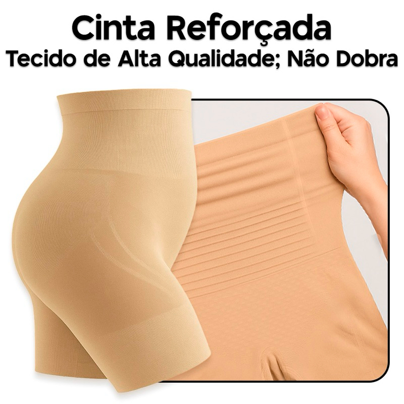 Cinta Shorts com Abertura Higienica e Reforço na Frente, Compressão 360° Plus Size, Midi Size 4 Barbatanas