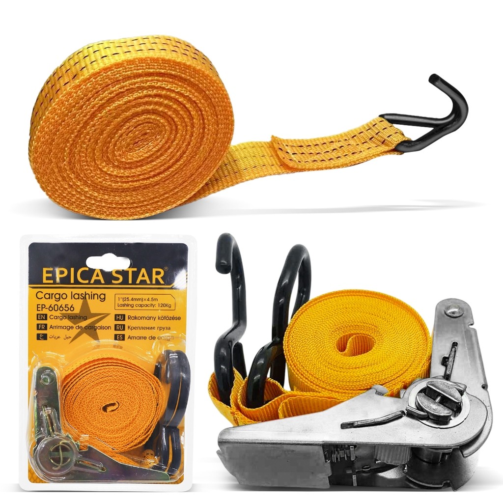 Detalhes do Produto Descrição do Produto 🎉A cinta de amarração de carga EPICA STAR, com largura de 1 polegada e comprimento de 4,5 metros, é um ótimo ajudante para amarrar cargas com segurança~Feita de materiais de alta qualidade, a fita é plana e macia, não danificando os produtos, e a fita metálica é sólida, elástica e durável, com a parte de encadernação da corda de aço forte e durável~ Equipada com gancho de linha dupla, não há necessidade de se preocupar com a queda durante o aperto, e a operação é fácil e sem esforço, podendo ser realizada por uma pessoa~Aplicável em diversos cenários, pode fixar as cargas com mais firmeza, e as fitas distribuídas uniformemente e flexíveis ainda minimizam os danos~Seja para transporte logístico, fixação de equipamentos ao ar livre ou organização de cargas diárias, todas podem ser realizadas com facilidade, trazendo muita segurança para a fixação de cargas~ Características - Segura e Confiável**: Gancho de linha dupla, não cai facilmente durante o aperto; fita plana e macia, não danifica os produtos~ - Excelente Material**: Fita metálica sólida, elástica e durável, encadernação de corda de aço resistente, resistente ao desgaste e à corrosão~ - Fácil de Operar**: Aperto sem esforço, pode ser operado por uma pessoa~ - Aplicável em Múltiplas Cenas**: Aplicável em diversos cenários como logística, ao ar livre, fixação de cargas diárias, etc.~ - Especificações Adequadas**: Largura de 1 polegada, comprimento de 4,5 metros, atendendo a diferentes requisitos de fixação de cargas~