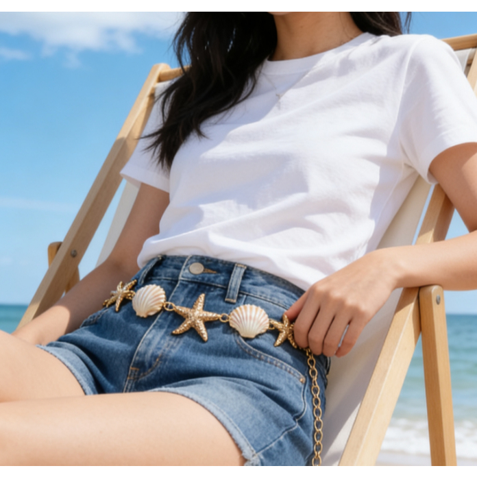 Cinto Corrente de cintura com concha e estrela do mar贝壳+海星腰链