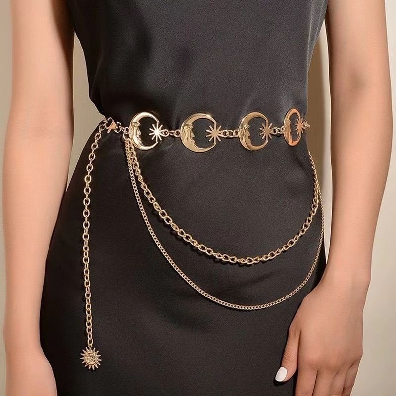 Cinto corrente Feminino Multicamadas Punk Gótico Sol Cintura Corrente Cintos De Metal Para Mulheres Vestido Jóias
