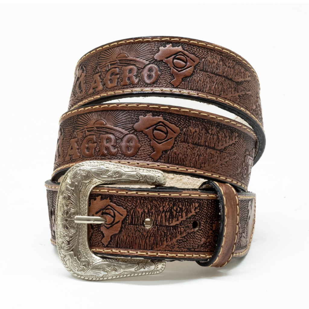 Cinto Country Atrevidu's Masculino Couro Estampa Agro Brasil