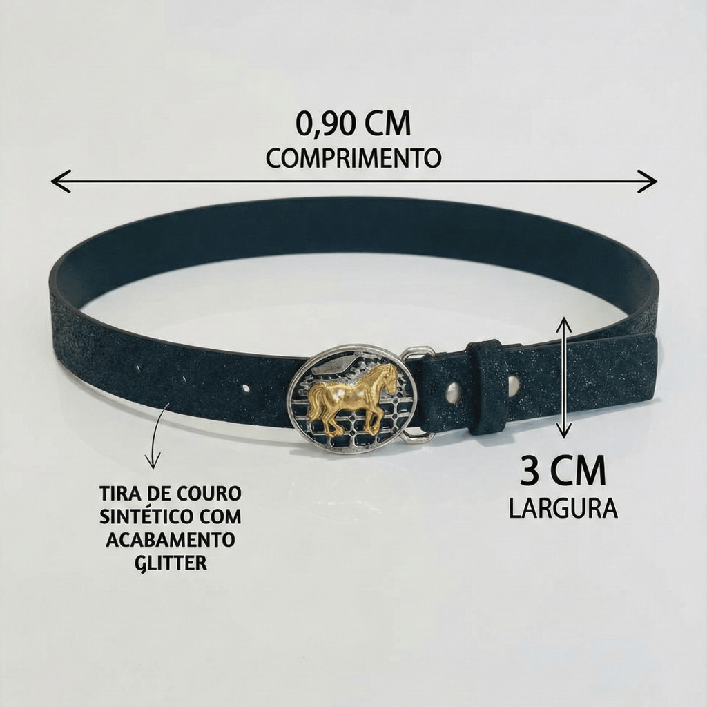 Cinto Country Boiadeira Infantil Menina Juvenil Brilho Glitter Strass Fivela Cowgirl Luxo