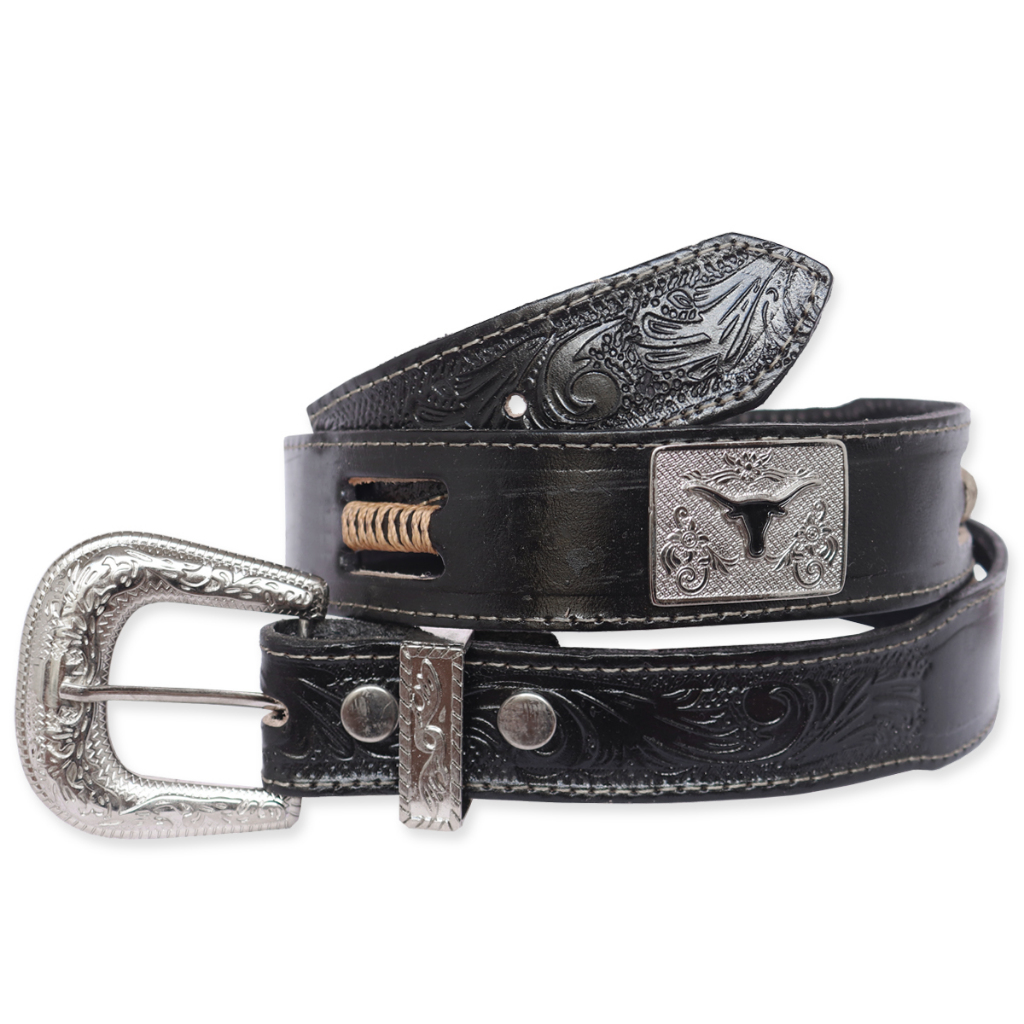 Cinto country adulto, confeccionado em couro legítimo. Detalhes em tranças artesanais, apliques e fivela banhados em zamac, livre de ferrugens. Excelente acabamento Disponíveis nas cores, preto, café, havana e palha