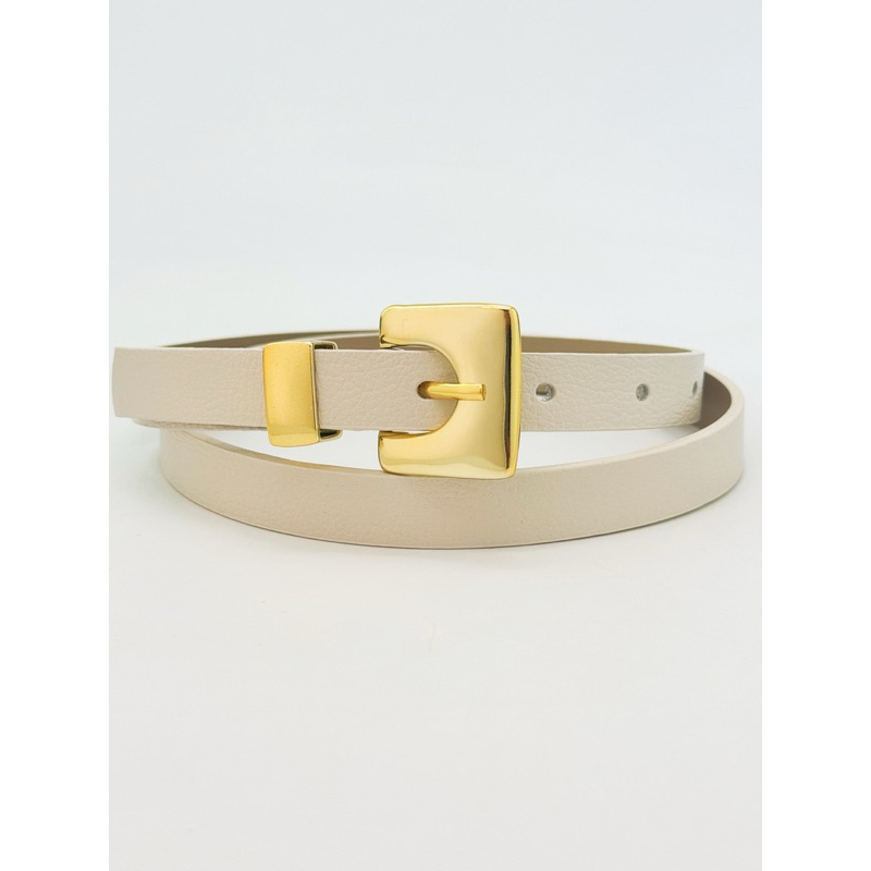 Cinto COURO de Minimalista com Fivela Dourada Formato de Liga, casual