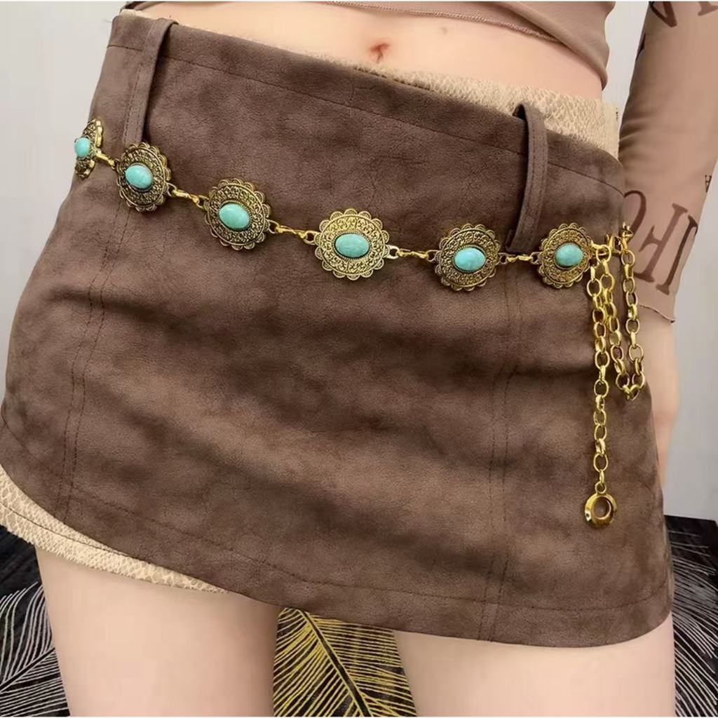 Cinto de Corrente Joia | Incrustado com Pedras e Estilo Boho Retro | Elegante e Cintilante para Looks Femininos