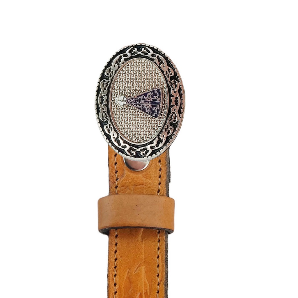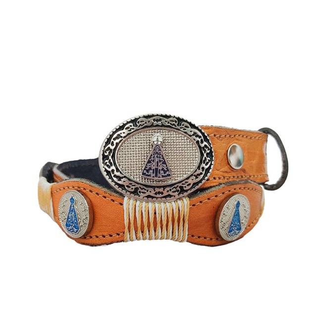 Cinto de couro infantil Nossa Senhora Aparecida trançado com apliques