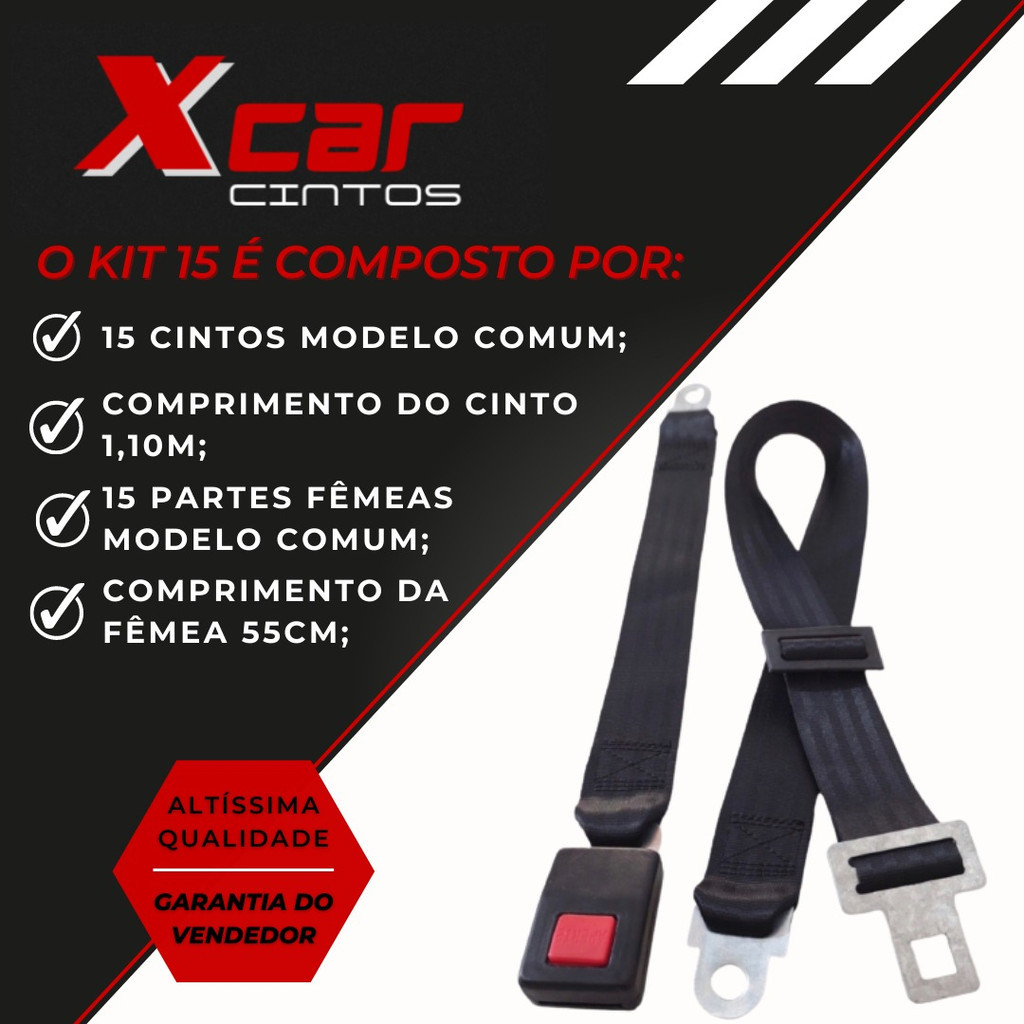 Cinto De Segurança 2 Pontas Simples Kit 15 Peças Ônibus Van