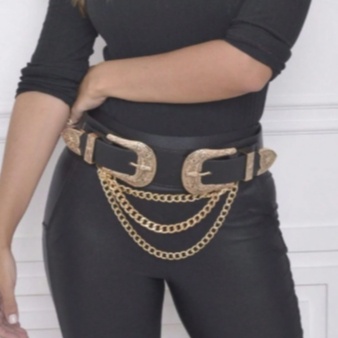 Cinto elástico estilo country de duas fivelas e três correntes双扣牛头松紧带3条链