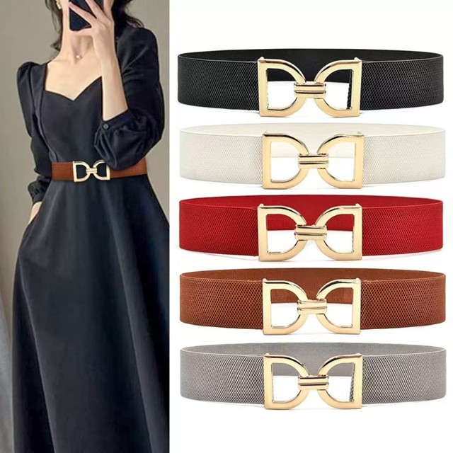 Cinto Elástico Feminino Estilo Coreano De Cintura Dourado Para Vestidos