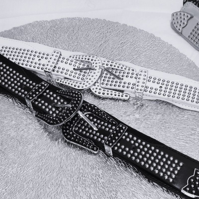 Cinto elástico largo e versátil com fivela dupla e decoração personalizada sem rebites
