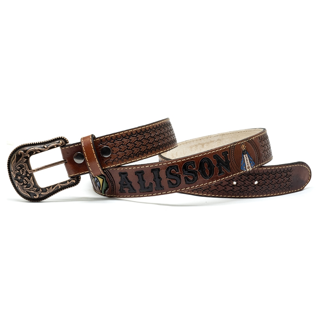 Cinto Em Couro Country Personalizado Atrevidu's Nossa Senhora Brasil