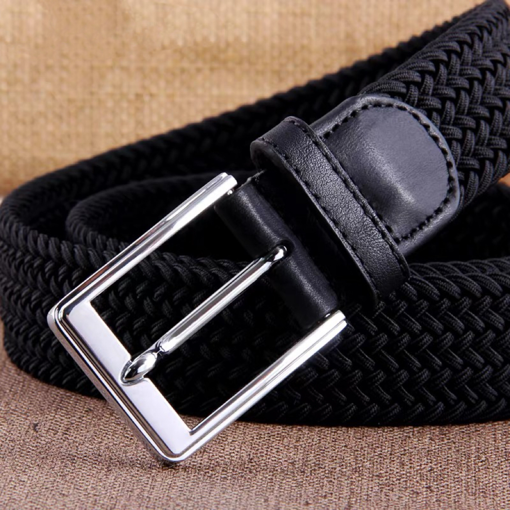 Cinto Esportivo Masculino - Esporte Chique - Tecido Trançado Elástico, Ponteira couro, Fivela Metal