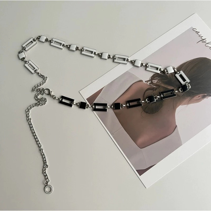Cinto Feminino 2 Em 1 Dupla Face Preto E Branco Moda Retângulo e Quadrado Shr