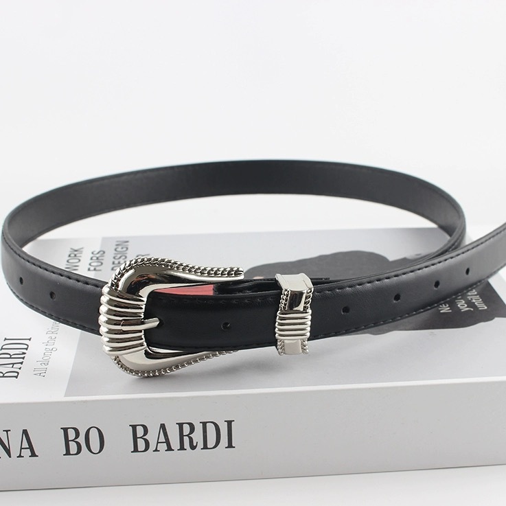 Cinto Feminino 2cm fivela de pino prata combinação de jeans saias 2024 verão