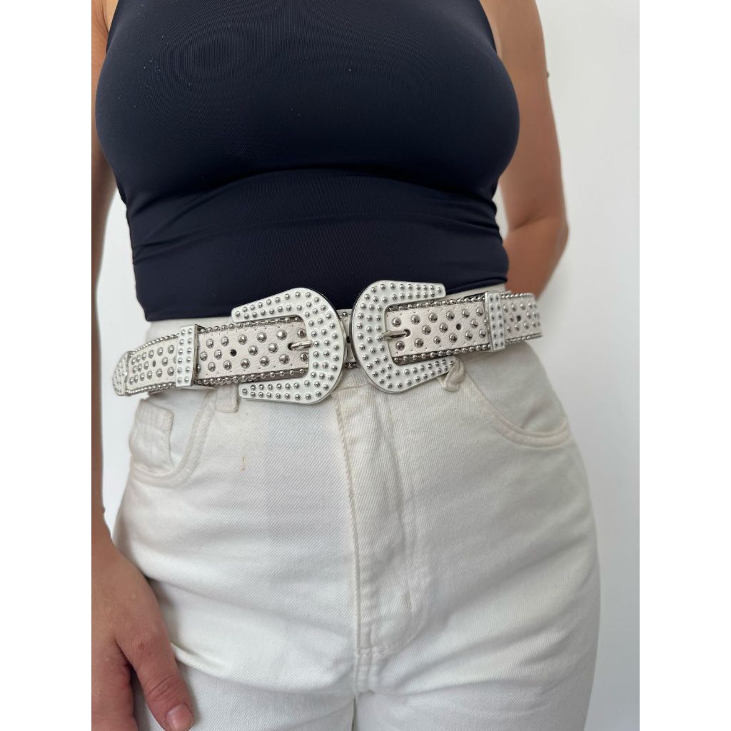 cinto feminino country com duas fivelas com rebites e stras fivela dupla western 110cm 36 ao 44 tem cupom de desconto?