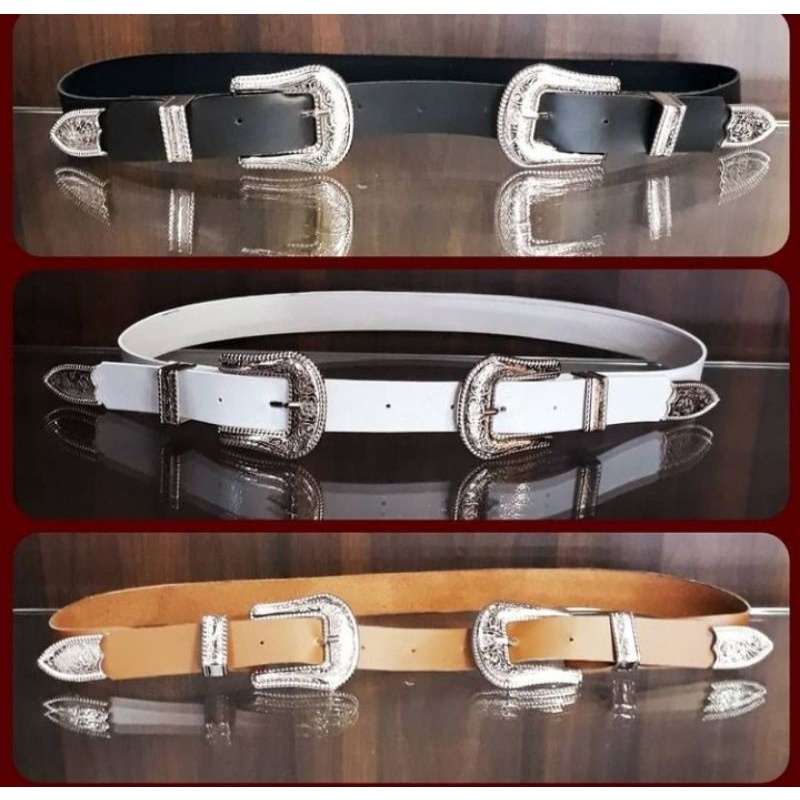 Cinto Feminino Country Couro 2 Fivela Dupla Plus Size Xgg