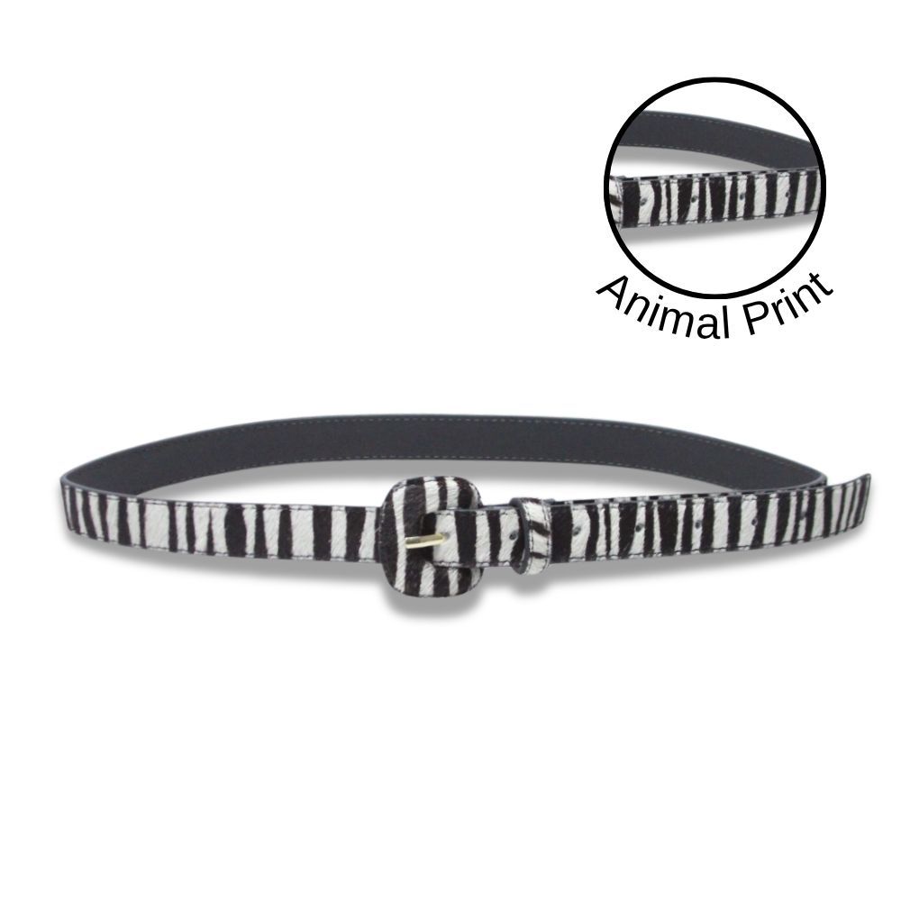 Cinto Feminino Couro Animal Print, Forrado Com Material Sintético (parte de trás), Cinto Costurado Nas Margens E Pintando Nas Laterais. Dimensões: Largura 2,3cm TAMANHOS: PP 34 90cm P 34/36 100cm M 38/40 105cm G 42/44 110cm