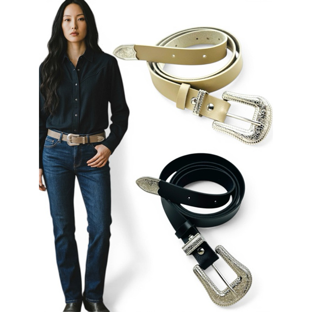 Cinto Feminino Cowboy Country Fivela Prata Couro Sintético Ajustável Elegante - Cecilia