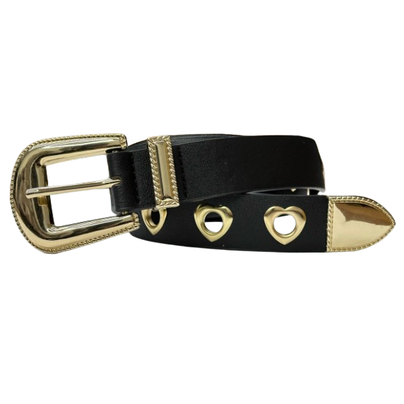 Cinto Feminino Detalhe Do Furo Em Coração Fivela Metal Oval Dourado