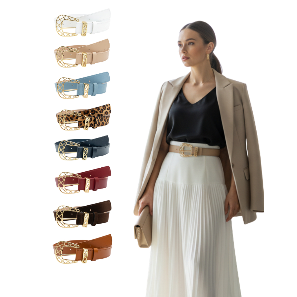 Cinto feminino em texturas de couro Fivela Quadrada Basico Sintetico Premium - Agnes