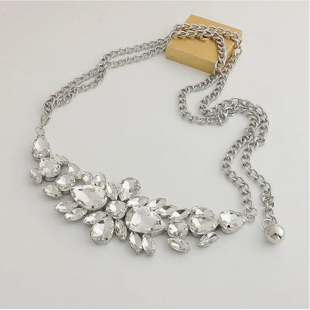 Cinto Feminino Pedraria Festa Metal Prateado