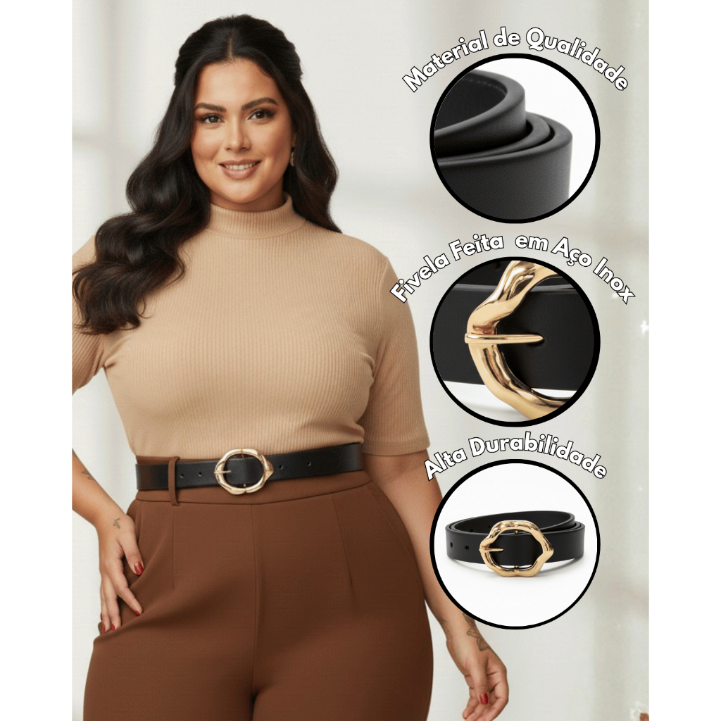 Cinto Feminino Plus Size Elegante Alfaiataria Casual Couro Sintético Social Fino Básico Sofisticado