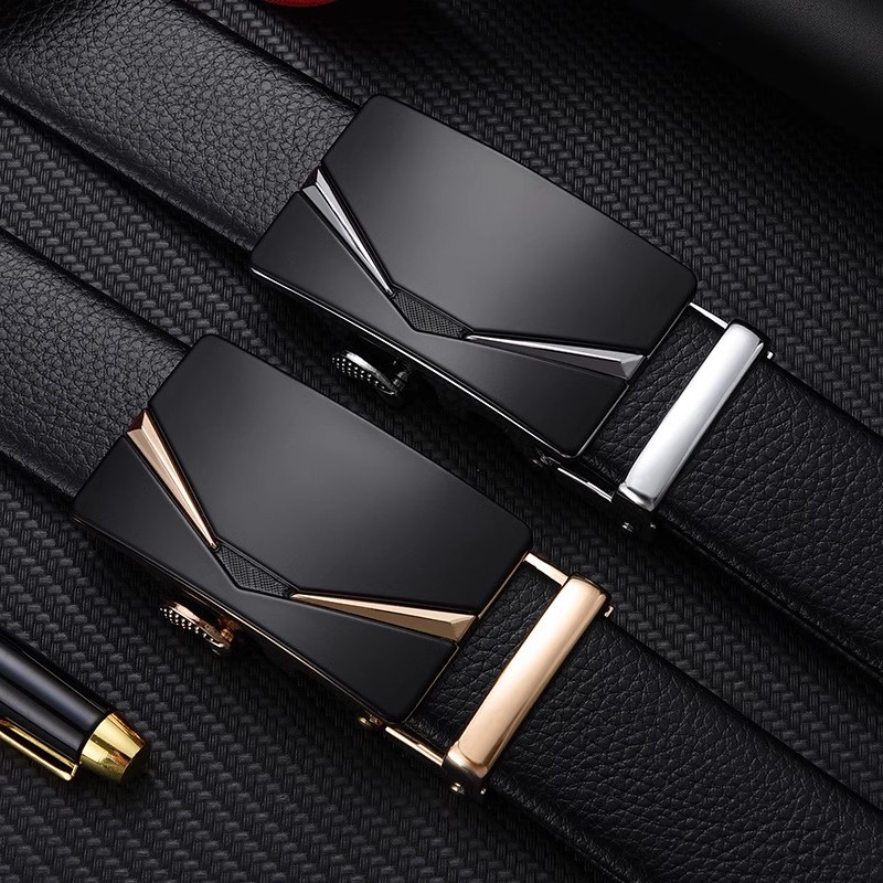 Cinto Masculino De Couro Genuíno Com Fivela Automática – Alça Ajustável Durável Para Negócios , Casual E Uso Diário