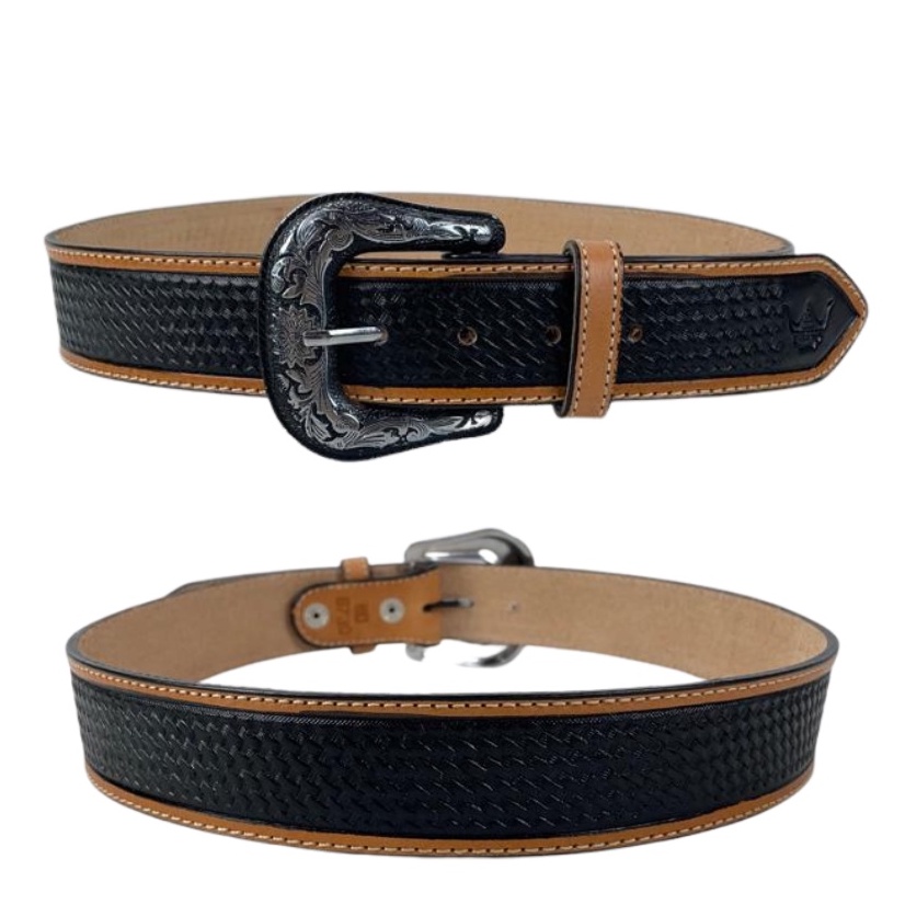 Cinto Masculino Pyramid Country Preto Couro 100% Legítimo Estampado Forma Balaio Para Cowboy